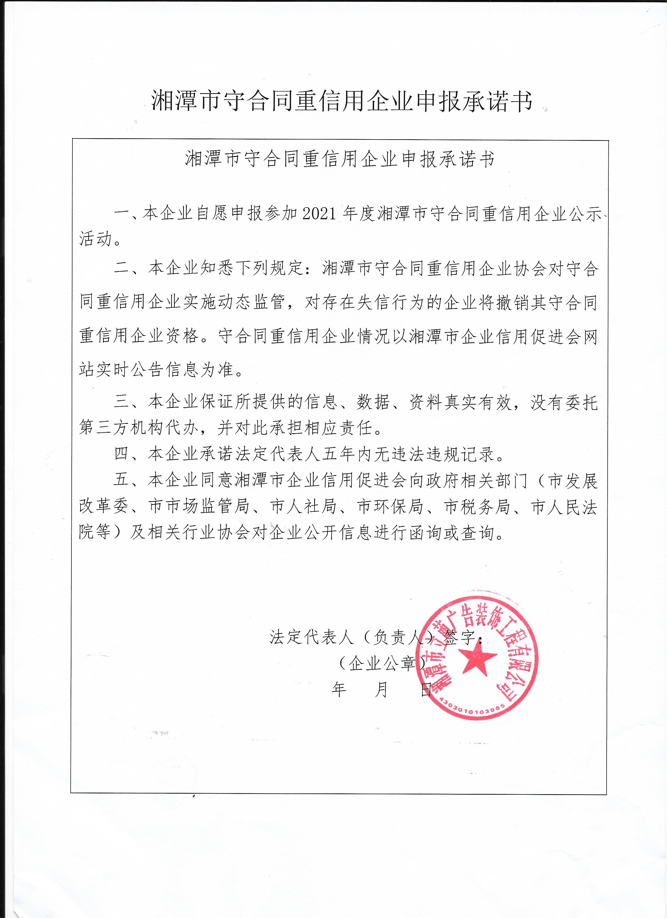 本企業(yè)根據(jù)《湘潭市守合同重信用企業(yè)申報規(guī)定》等編制 2021 年度企業(yè)信用報告書,并保證本報告書內(nèi)容真實、準確、完整。