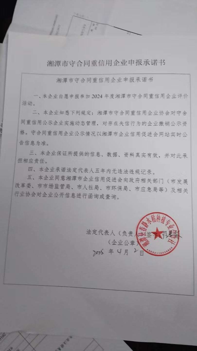 本企業(yè)根據《湘潭市守合同重信用企業(yè)申報規(guī)定》等編制 2024 年度企業(yè)信用報告書,并保證本報告書內容真實、準確、完整。
